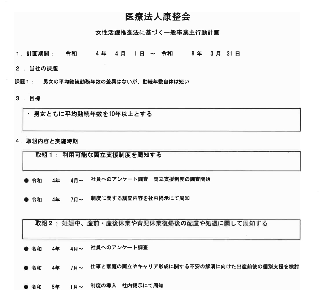 医療法人 康整会 一般事業主行動計画